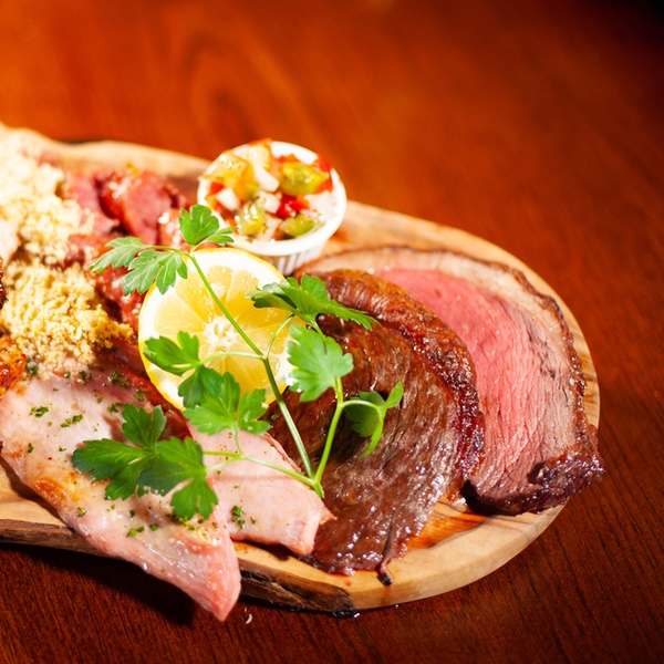 All Served with Farofa, Vinaigrette, Brazilian-style Garlic Bread and Chips to Share, Pepper / Garlic Beef, Picanha Chicken Pepper / Garlic Beef, Sausages, Gammon & Pork Loin All Served with Farofa, Vinaigrette, Brazilian-style Garlic Bread and Chips to Share.