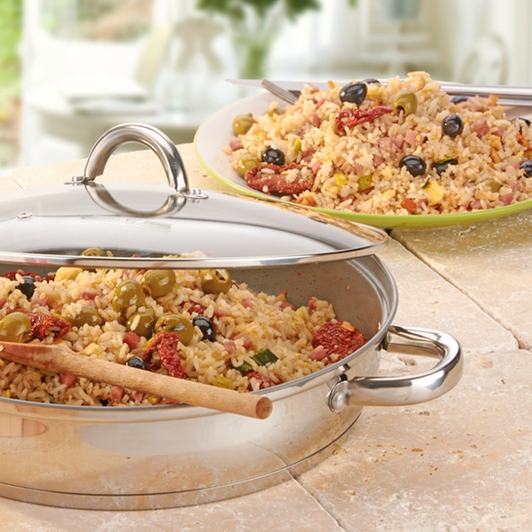 Suitable for all hob types, this pan comes with a glass lid featuring a large loop handle for ease of use; suitable for all hobs and ovens