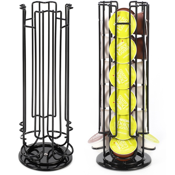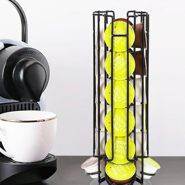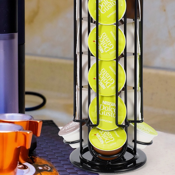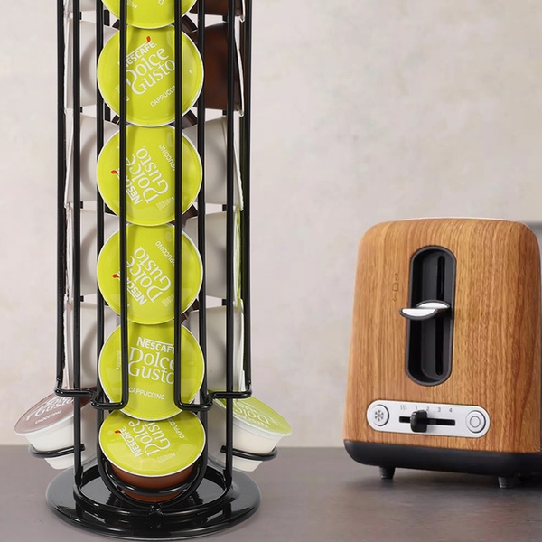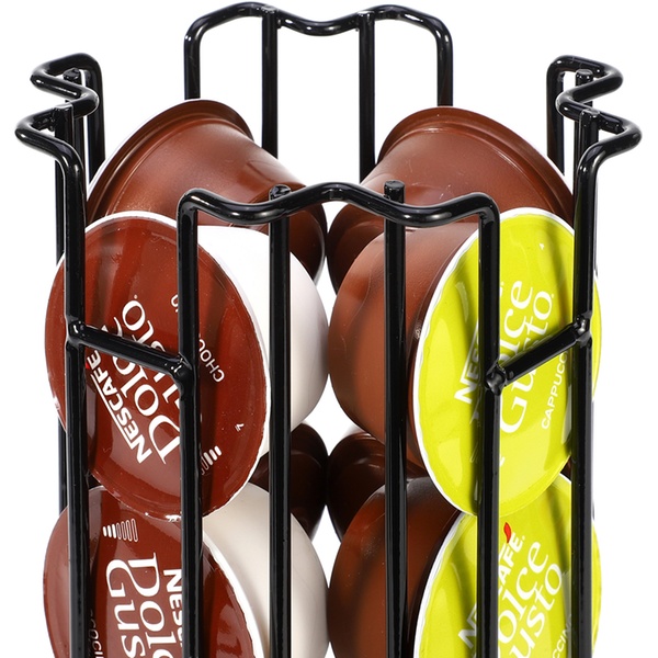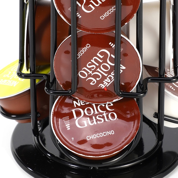 Designed to provide convenient storage for up to 24 Dolce Gusto coffee pods, this holder features a 360-degree rotating non-slip base
