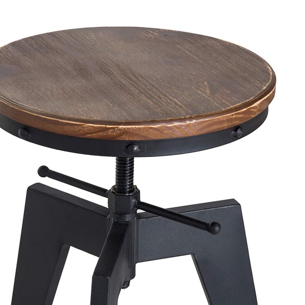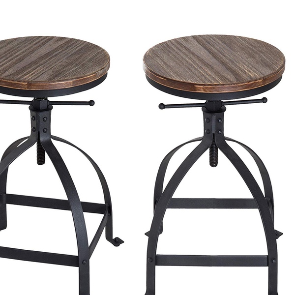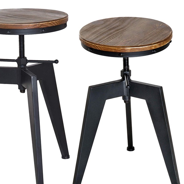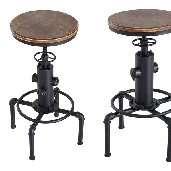 Featuring thick steel frame and pine wood top, these vintage, industrial-style stools are ideal for providing extra seats for guests
