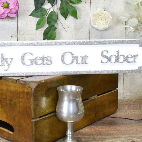 - Nobody Gets Out Sober - Silver Glitter: 60cm x 9.5cm x 2.5cm