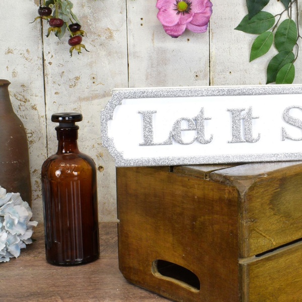 - Let It Snow - Silver Glitter: 40cm x 9.5cm x 2.5cm