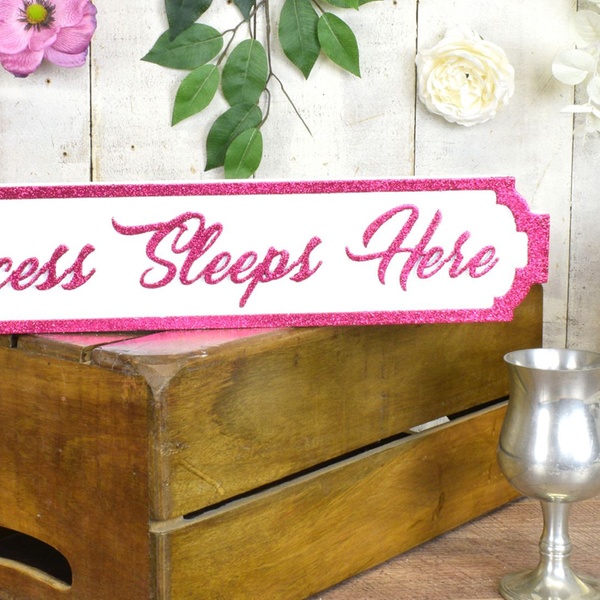 - Princess Sleeps Here - Pink Glitter: 47cm x 9.5cm x 2.5cm