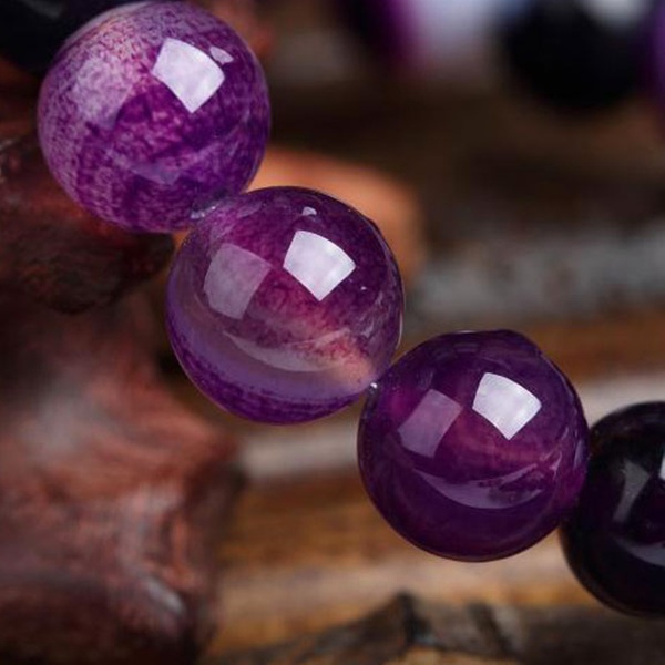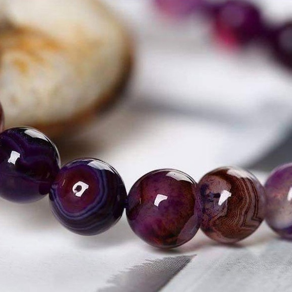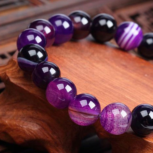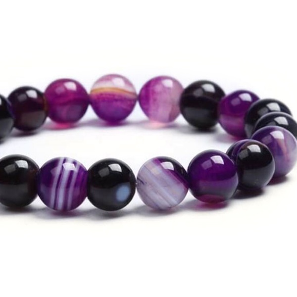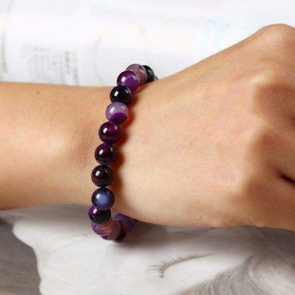 Crafted from natural violet agate stones, this bracelet showcases unique patterns that may promote inner peace and emotional balance