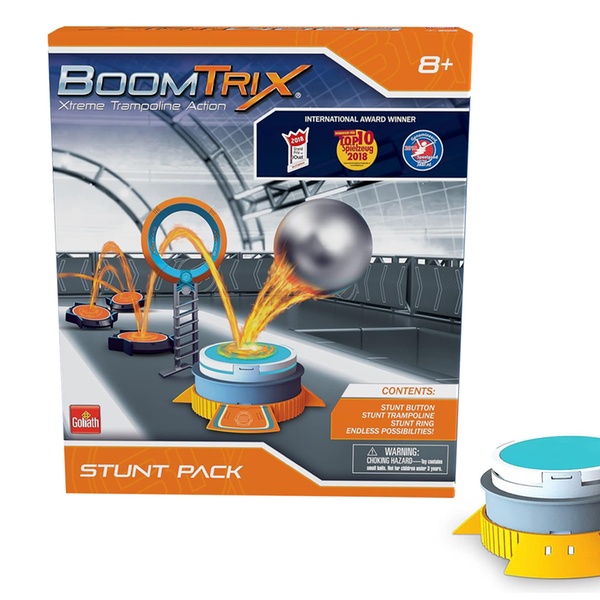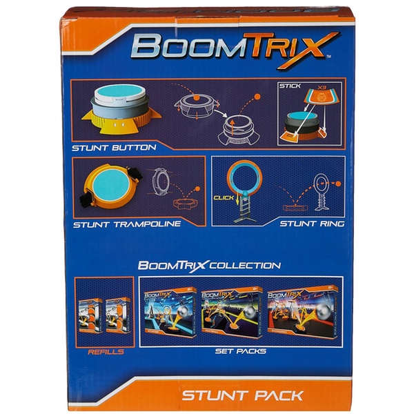 - Includes marble track with a launch tower, trampolines, stunts and finish.