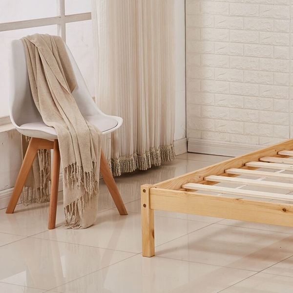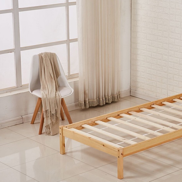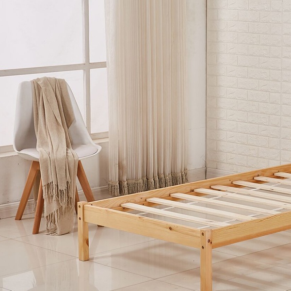 Featuring a simple and minimalist design, this bed frame with slats is made of solid pine wood