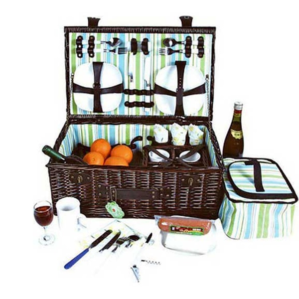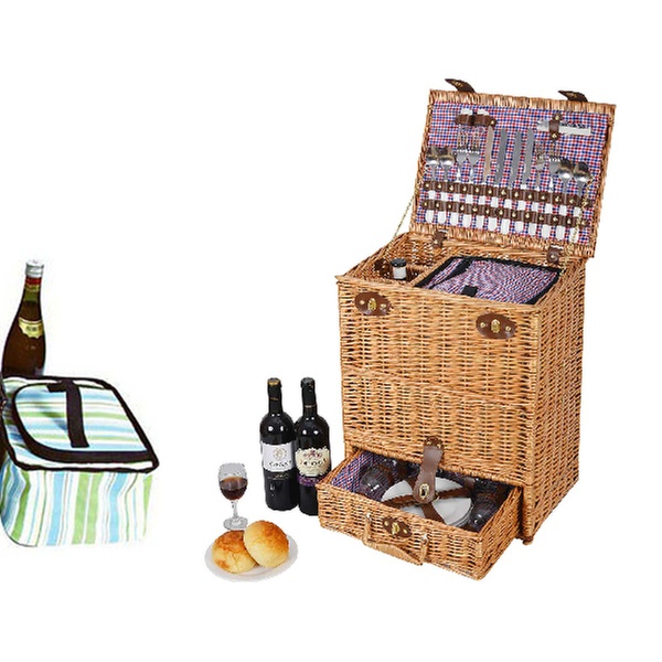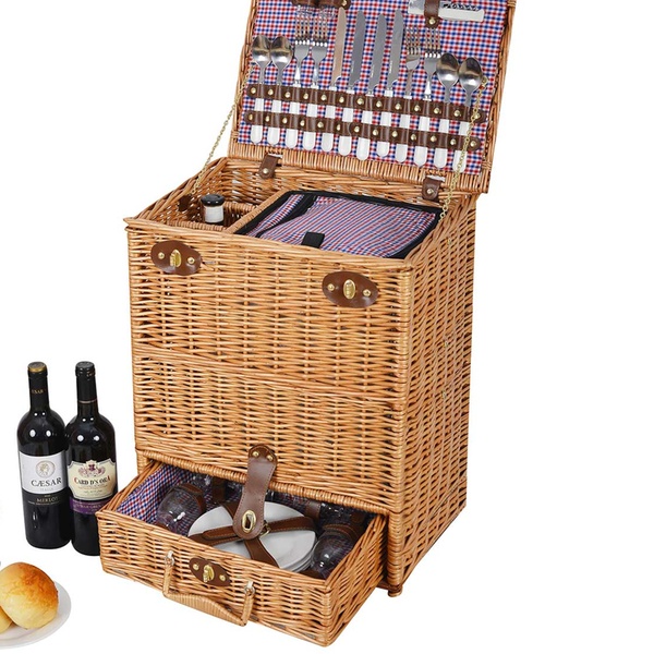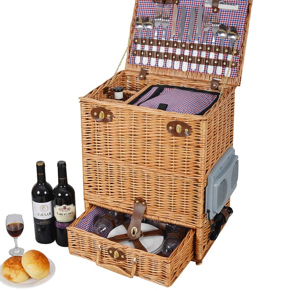 Four-Person Willow Picnic Basket with Cutlery and Cooler