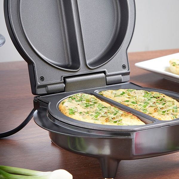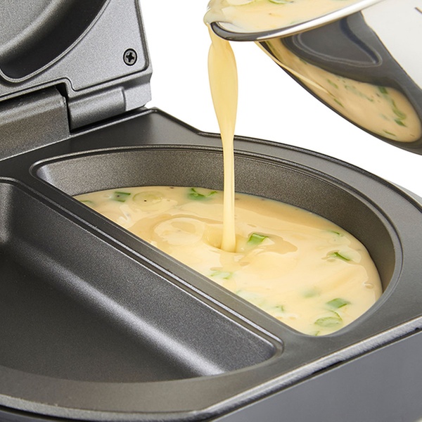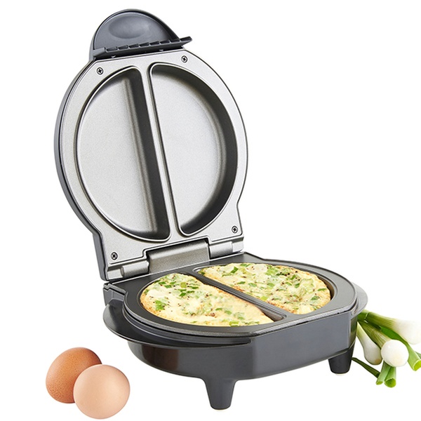 Featuring non-stick plates and cool-touch housing, this omelette maker can make two plain or filled omelettes at once