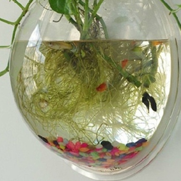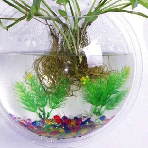 - Package includes: wall-mounted bowl tank | nail | simulation plants, stones and hangers