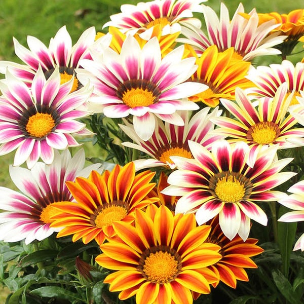 - Gazania 'Firecracker' Mix - Offers large, daisy-like blooms in vibrant shades