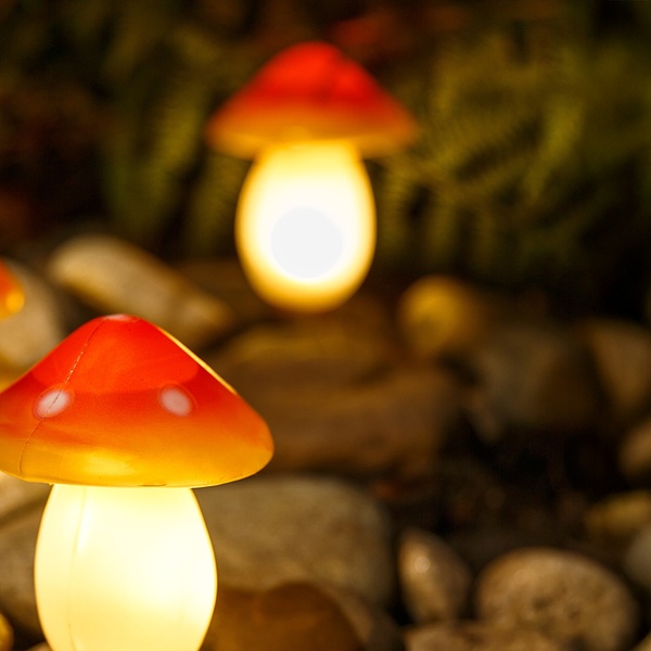 • Each mushroom features 3 warm white LEDs for a soft, inviting ambience