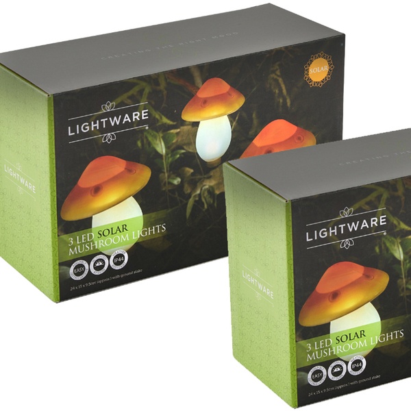 Set of Three or Six Warm White Solar Mushroom Outdoor Garden Lights