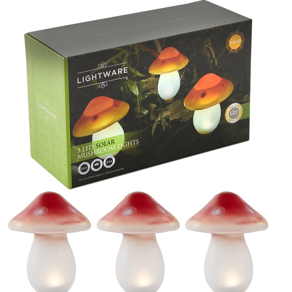 Add a touch of magic to your outdoor space with these charming solar mushroom garden lights. Emitting a soft, warm white glow from 3 LEDs per mushroom, these eco-friendly lights are perfect for beds, paths, or patios. They're solar-powered, weather-resistant, and available in a set of 3 or 6.