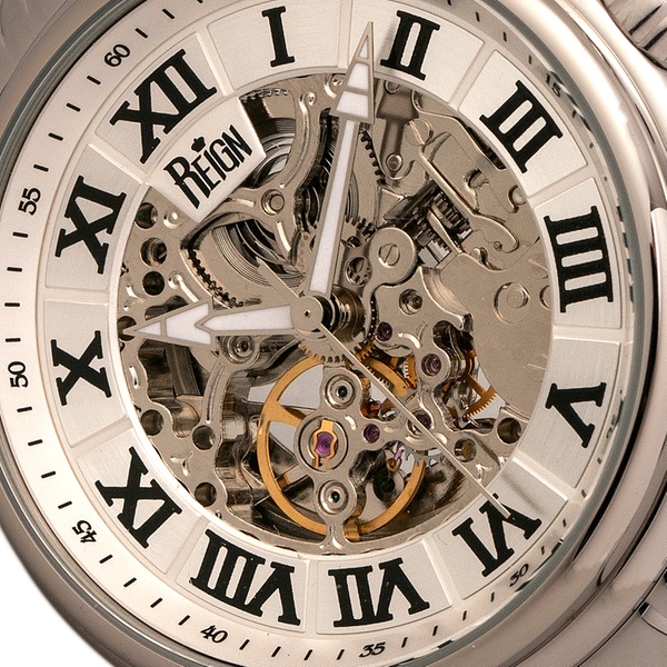 Featuring 316L stainless steel case and 22-jewel automatic movement, this automatic watch by Reign has a skeleton dial