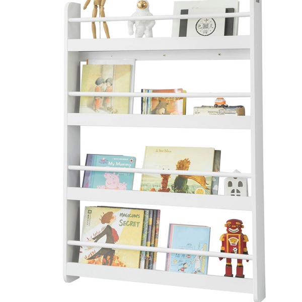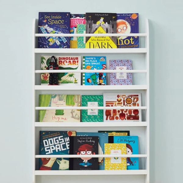 Featuring four large shelves, this hanging wall bookshelf is a stylish and practical addition to any space