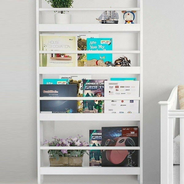 This hanging wall bookshelf is the perfect way to add storage and style to your home. It is made from a blend of solid wood and MDF for durability and features four large shelves with a barrier, so you can display your books, magazines, and other belongings without them falling out. The bookshelf is also water resistant and easy to clean with a damp cloth.
