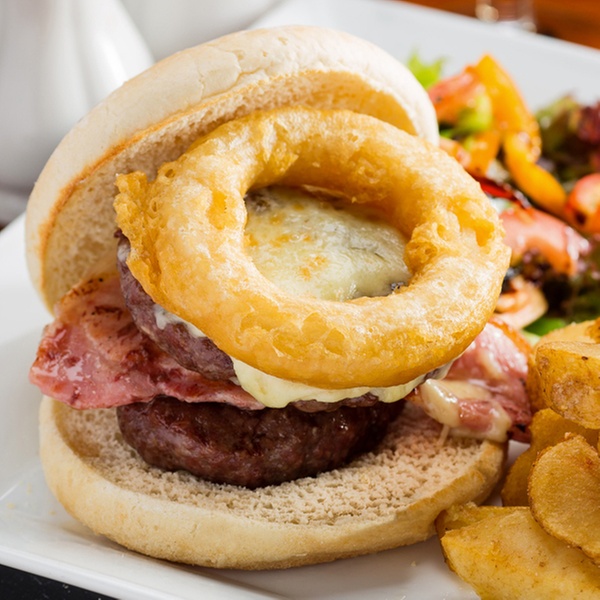 Pub Favourites may include: fish pie topped with cheesy mash served with seasonal vegetables | fish chips and mushy peas | spicy beef chilli con carne with rice chips or half-and-half | steak and ale pie with rustic chips, mash or new potatoes, and a serving of vegetables | Loggerheads tower burger with chips and salad garnish