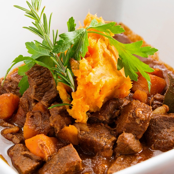 Alternative mains: braised ox cheek with shallot mash, roast root vegetables and rich gravy | game sausages with mash potato seasonal vegetables and redcurrant gravy | potato-topped beef bourguignon with seasonal vegetables | pork and smoked bacon pie with new potatoes vegetables and a smoked bacon and cider sauce | oven-baked salmon fillet with sweet potato and chickpea curry
