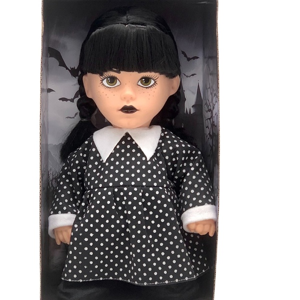 - Meticulously designed to replicate Wednesday's iconic look from the show, featuring her signature deadpan expression and black dress with a white Peter Pan collar