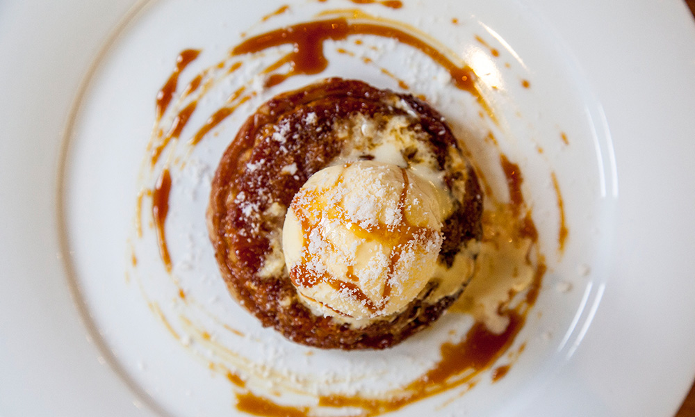 Pineapple tarte tatin with vanilla ice cream and coconut powder (£6.50)