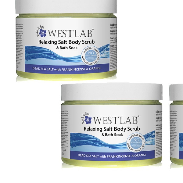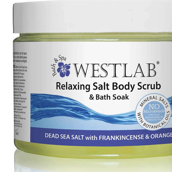 - Calming and relaxing Relax Dead Sea Salt Scrub and Soak with frankincense, bergamot and geranium