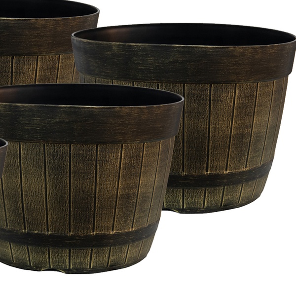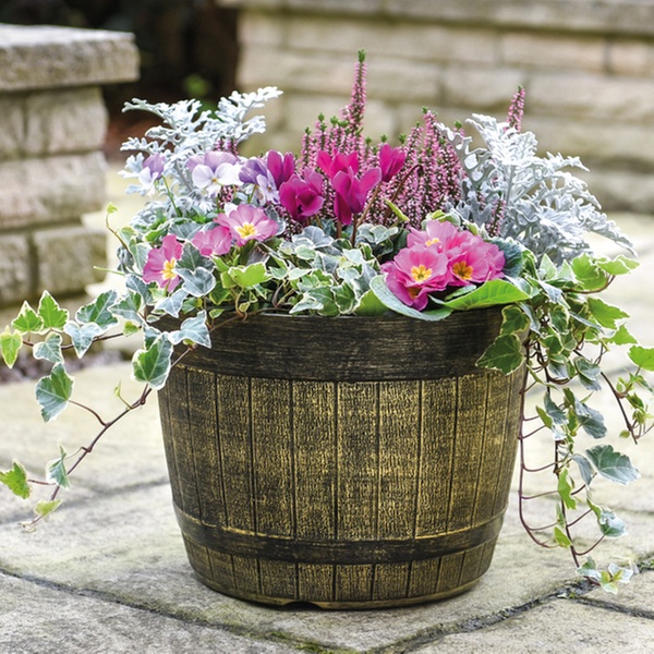 Lightweight and easy to move, this barrel-shaped planter can be an ideal addition to most gardens, backyards and patios