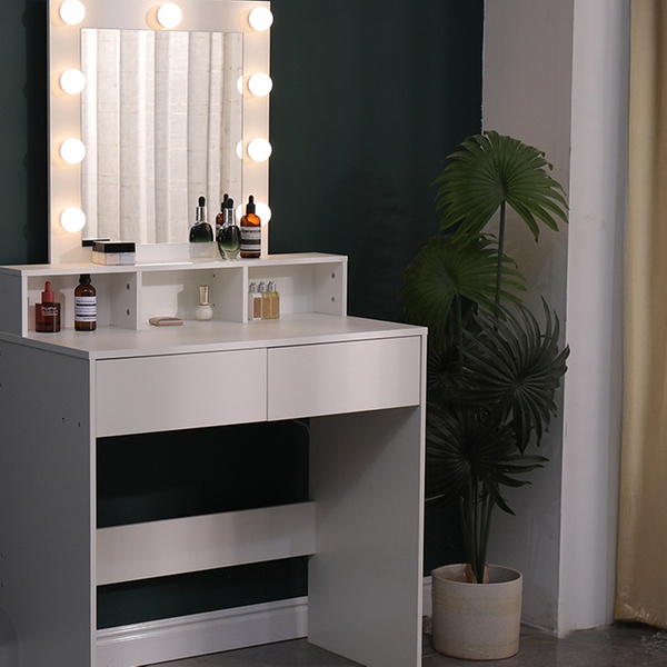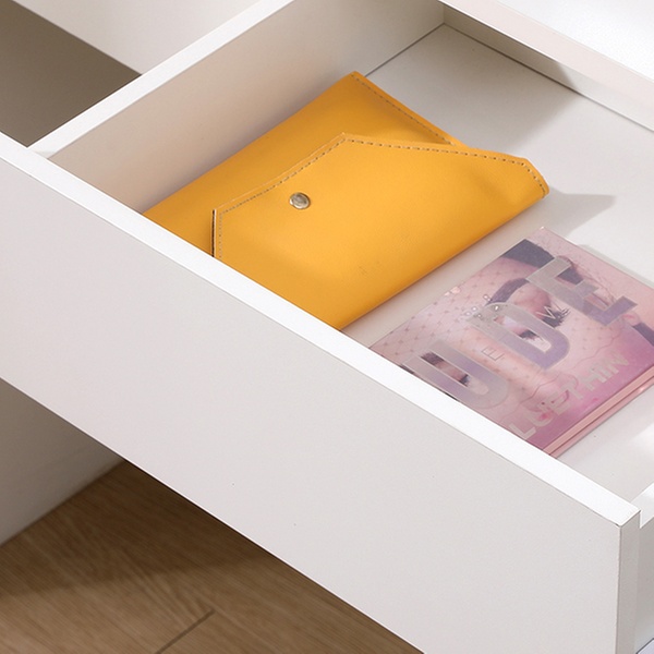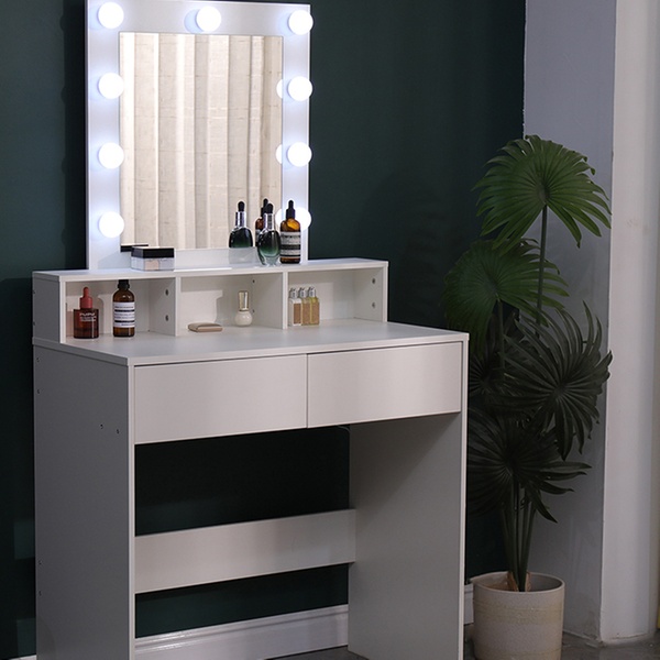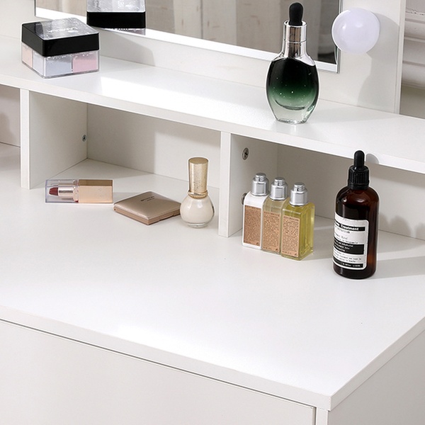 - Ample Storage: Two drawers and three open compartments neatly organise cosmetics, accessories, and essentials.