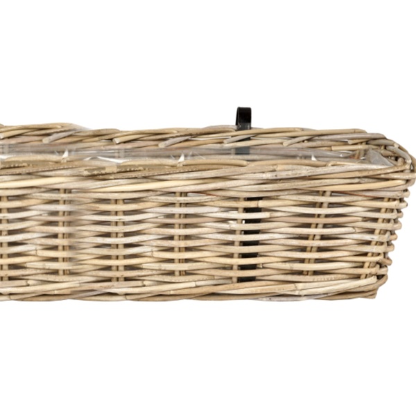 Ideal for a balcony or garden flower display, these natural wicker planters can hang easily on any railings