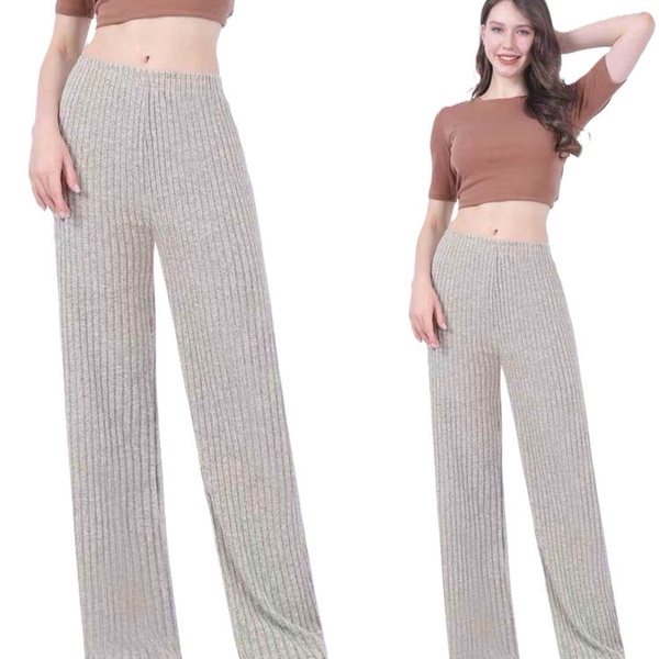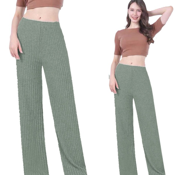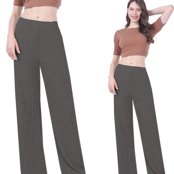 Today's Groupon offers Wide Leg Rib Knit Casual Bottoms, distributed by Want Clothing.