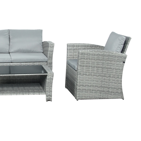 Crafted with a UV-resistant rattan frame, this garden lounge set promises durability and effortless elegance for outdoor gatherings