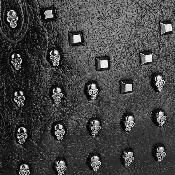 - Each zipper pull is embellished with a skull stud, enhancing the edgy aesthetic