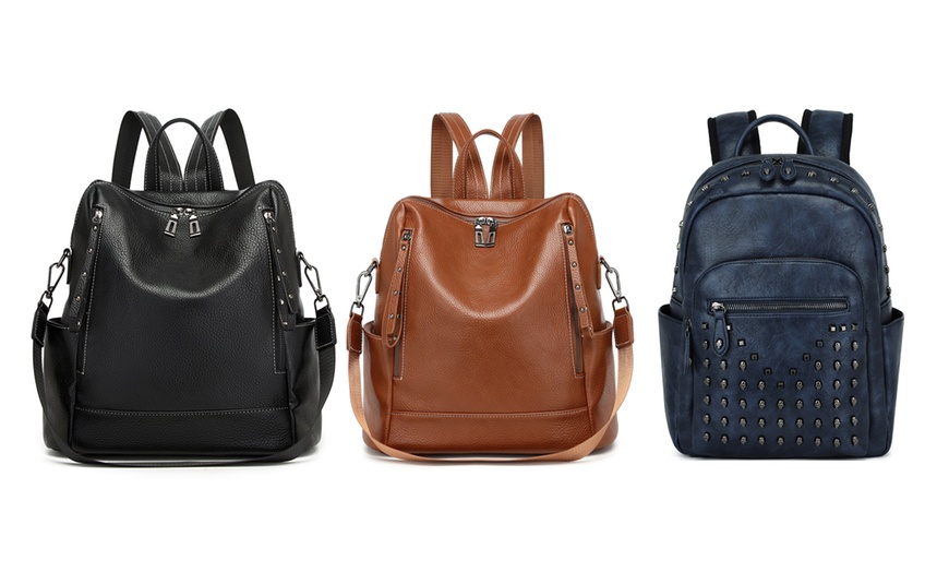 Women's Convertible PU Leather Backpack and Shoulder Bag - BPM2438: