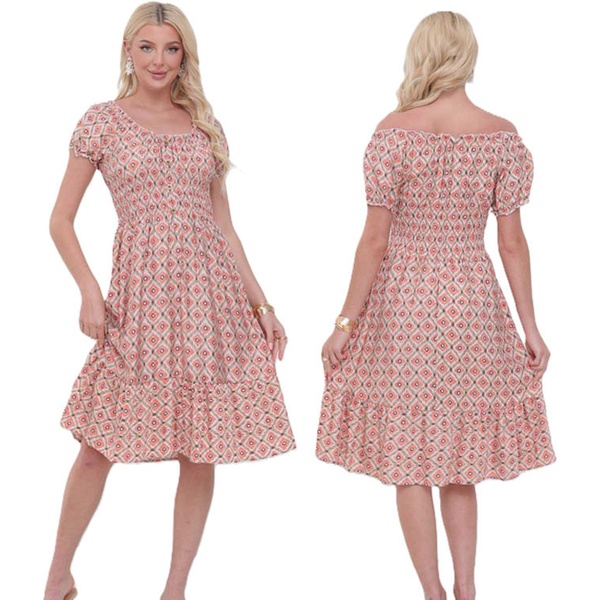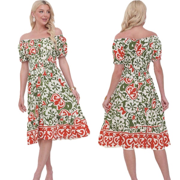 Today's Groupon offers Women's Printed Bardot Gypsy Midi Dress, distributed by Want Clothing Ltd.
