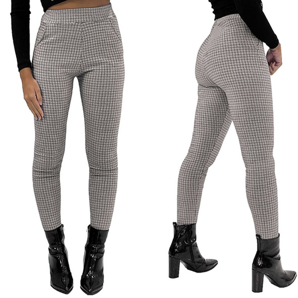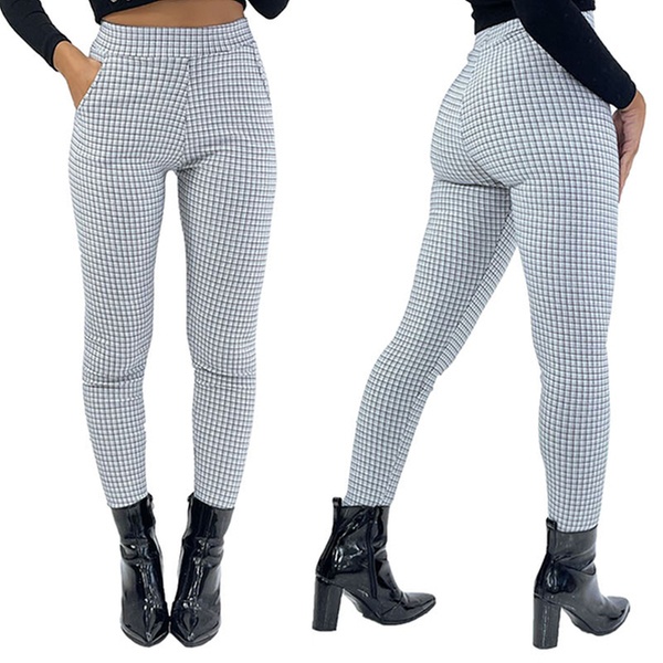 Today's Groupon offers Women's Smart Check Print Stretch Trousers, distributed by Want Clothing Ltd.