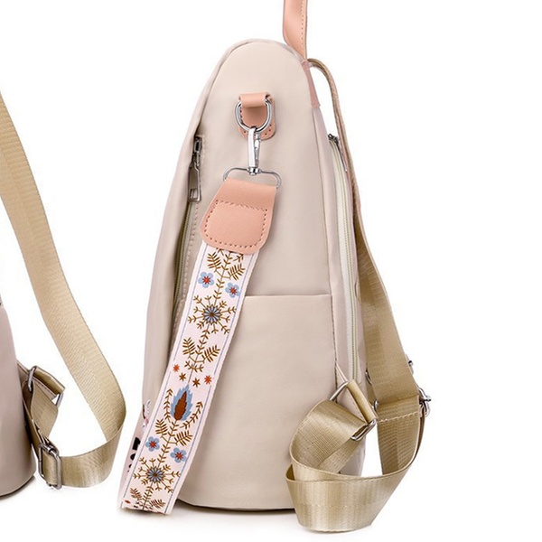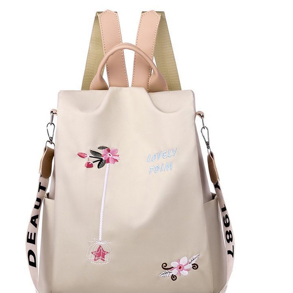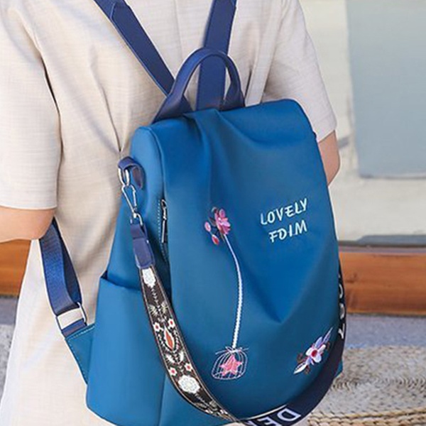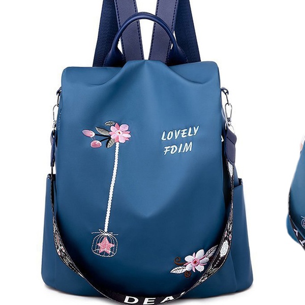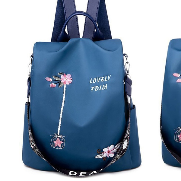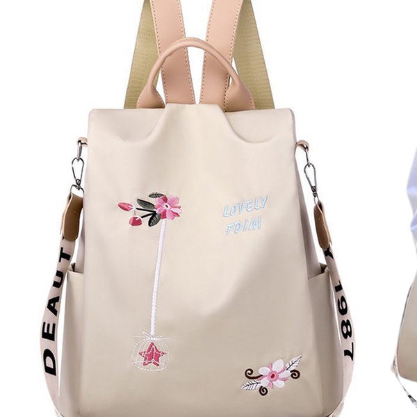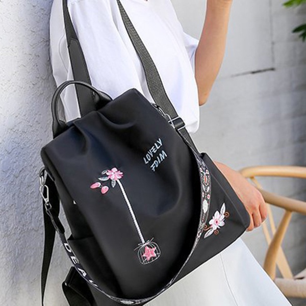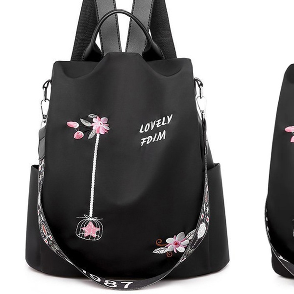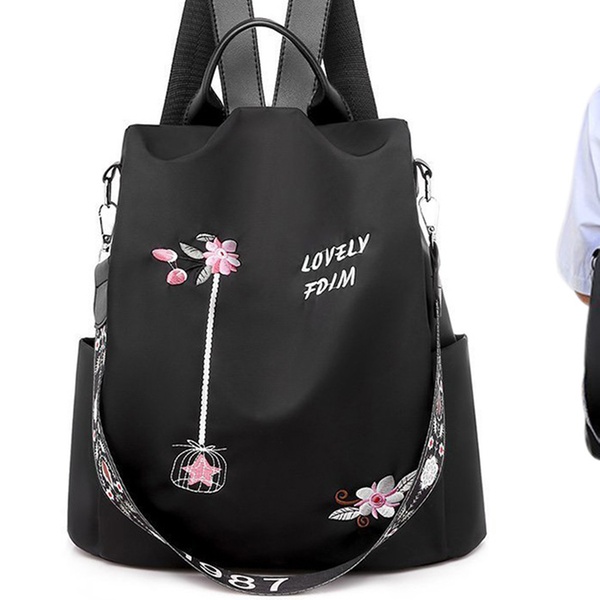 Combining chic floral embroidery with anti-theft protection, this backpack offers versatility for any adventure