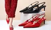 Women's Lacquered Leather Pointed Hollow Sandals with Buckle Heels