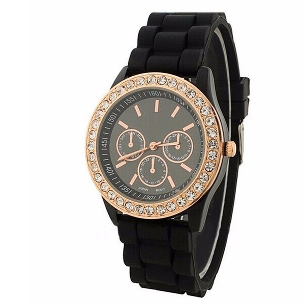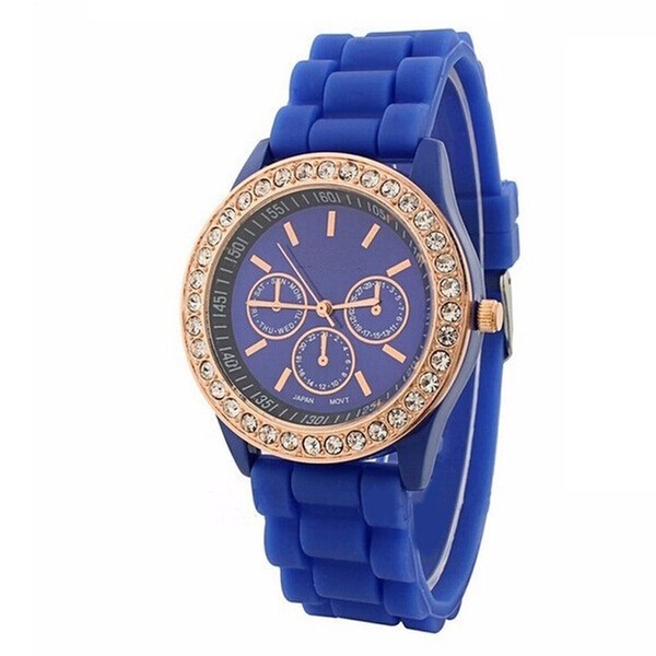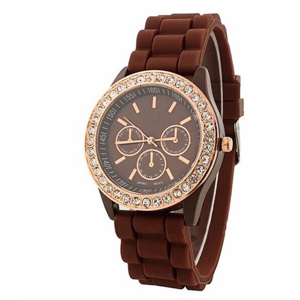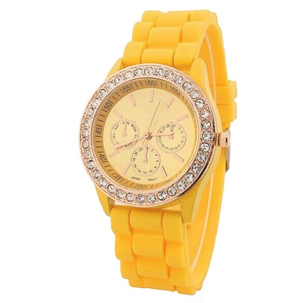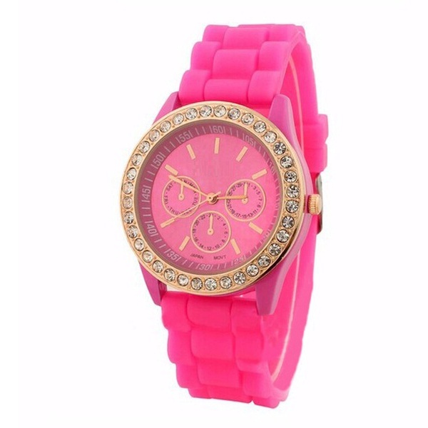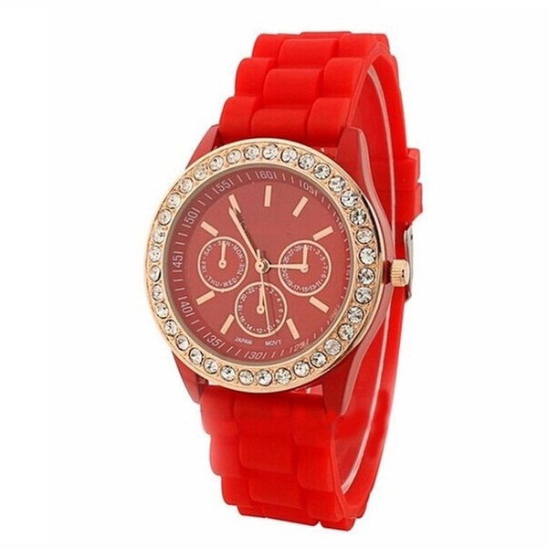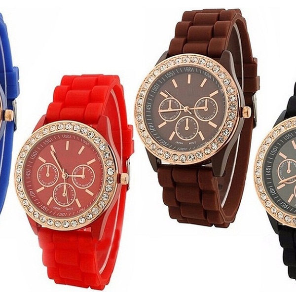 Adorned with Crystals from Swarovski®, these bright coloured watches feature a rubber band and quartz movement