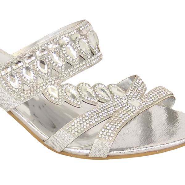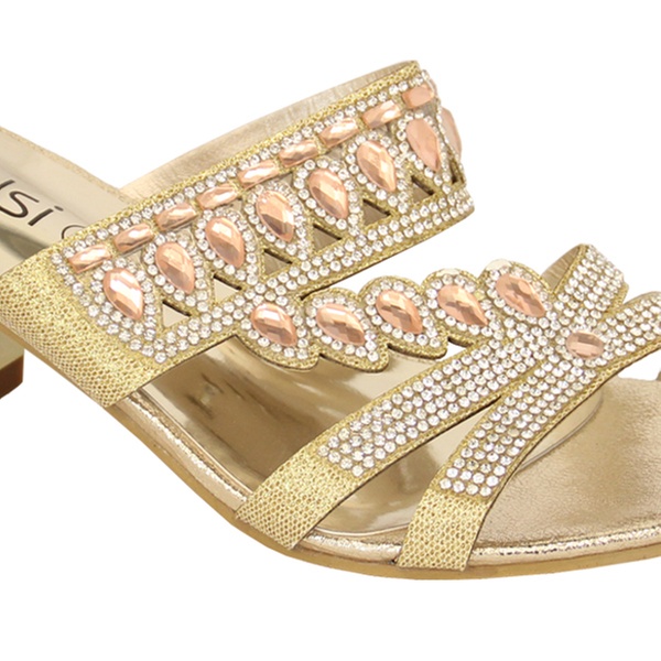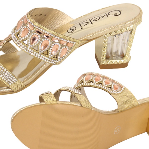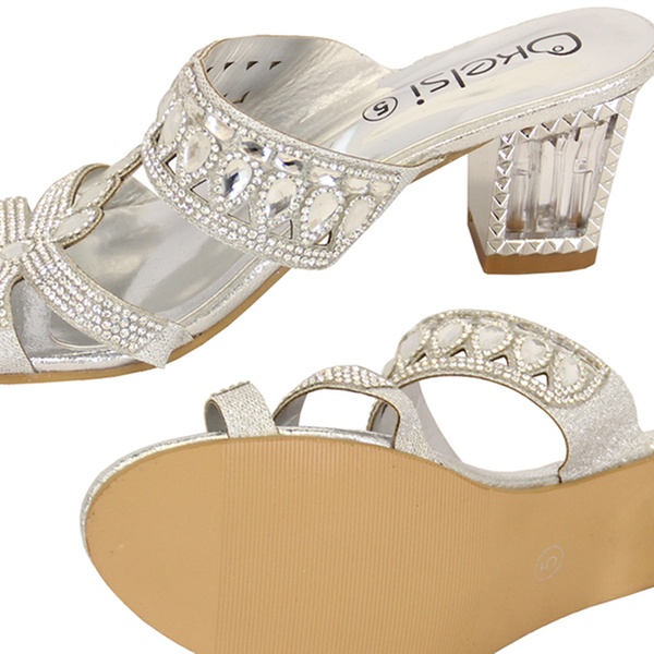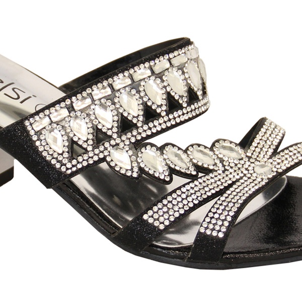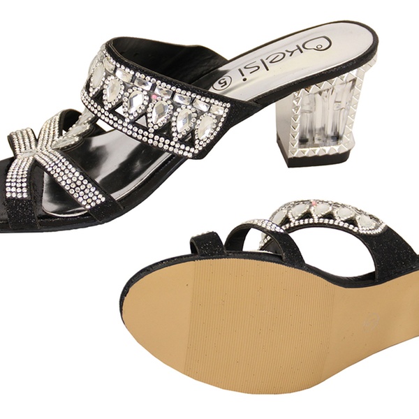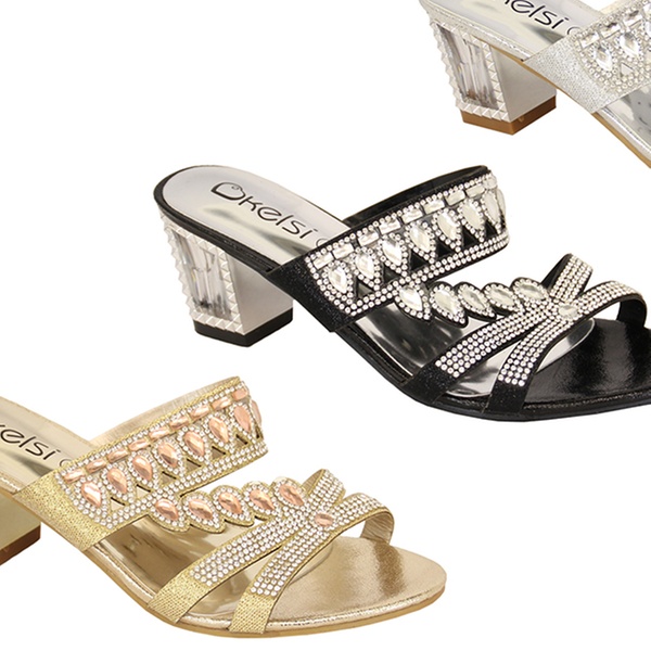 Available in three colours, these women’s sandals feature a diamante detail on the front and a two-inch heel