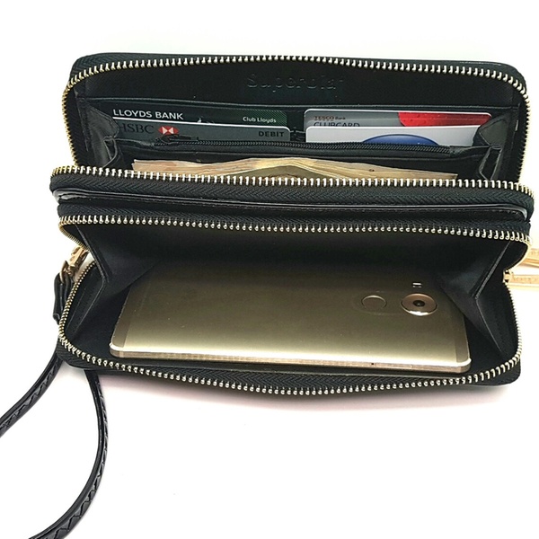 - Double-zipped compartments suitable for cash, keys, a mobile phone or cards