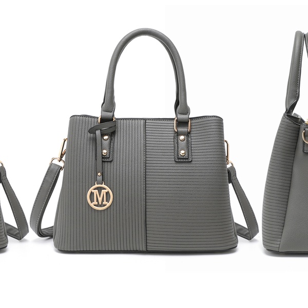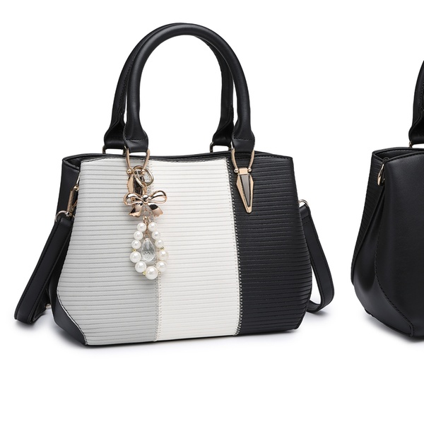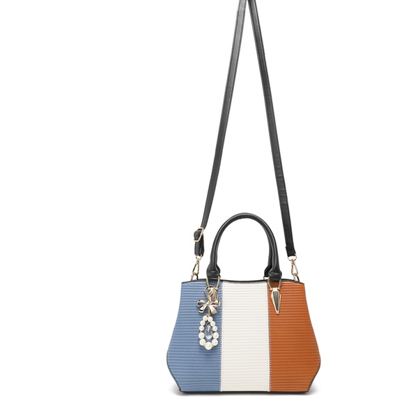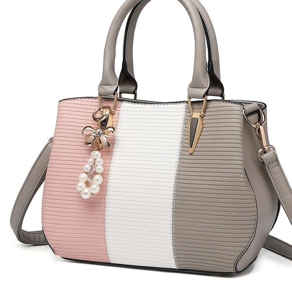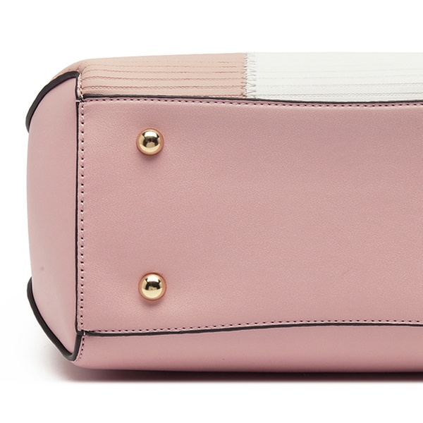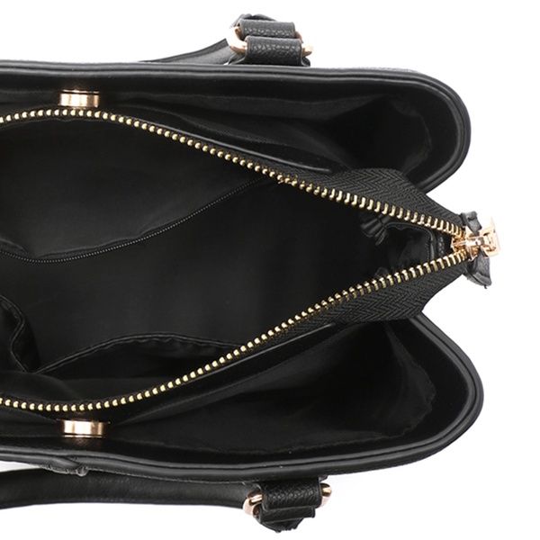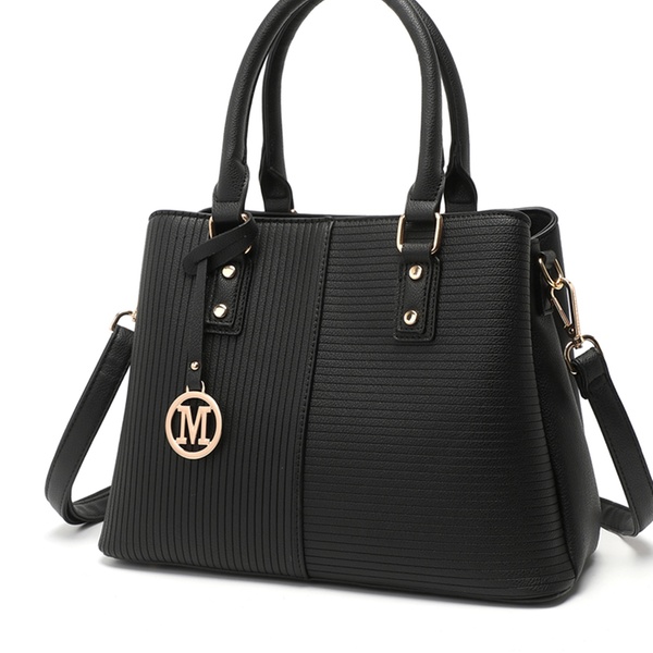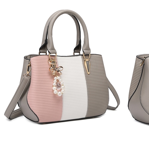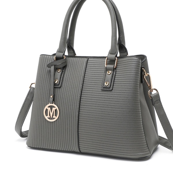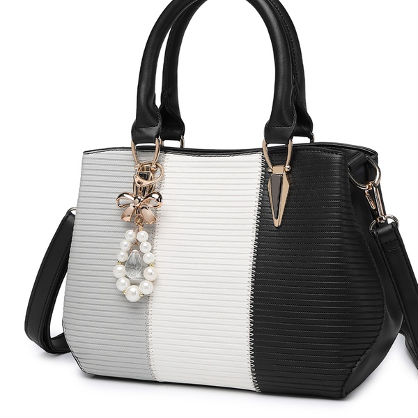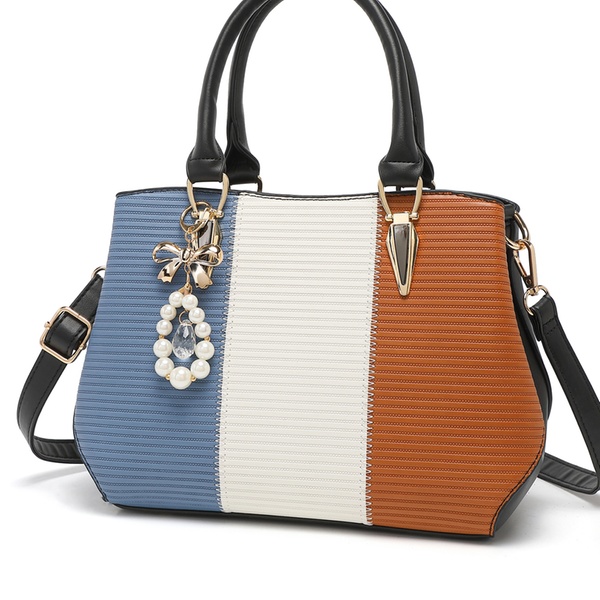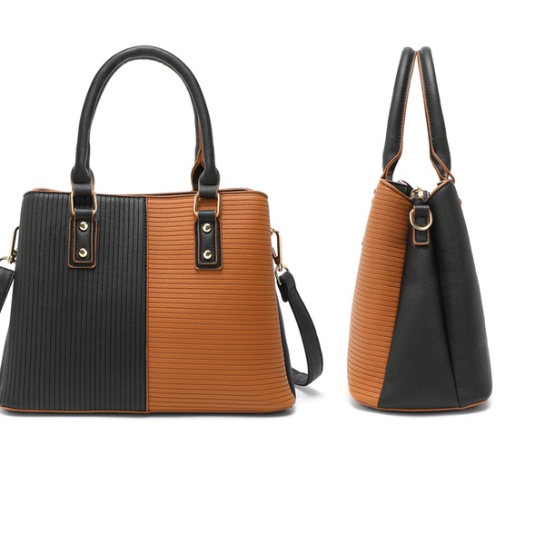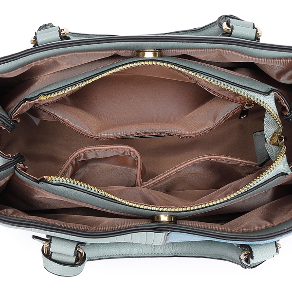 PU Leather Lady's Textured Panel Tote Handbag With Long Strap