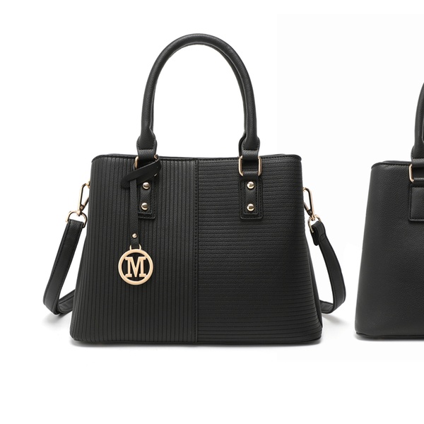 - Features a textured front panel with a detachable ''M'' emblem pendant