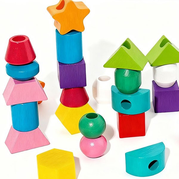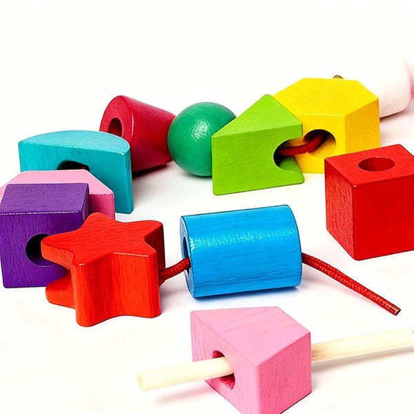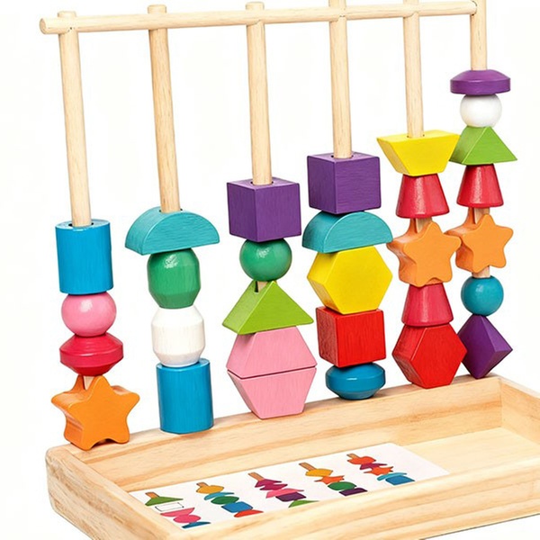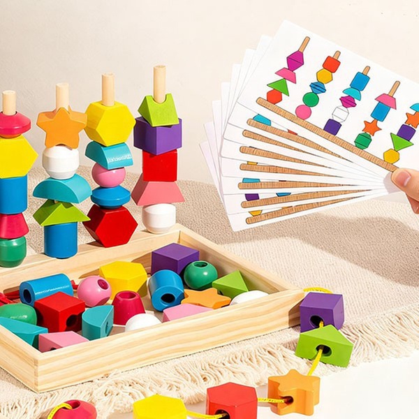 Designed for imaginative play, this colorful wooden bead set enhances creativity while promoting essential skills through lacing and stacking