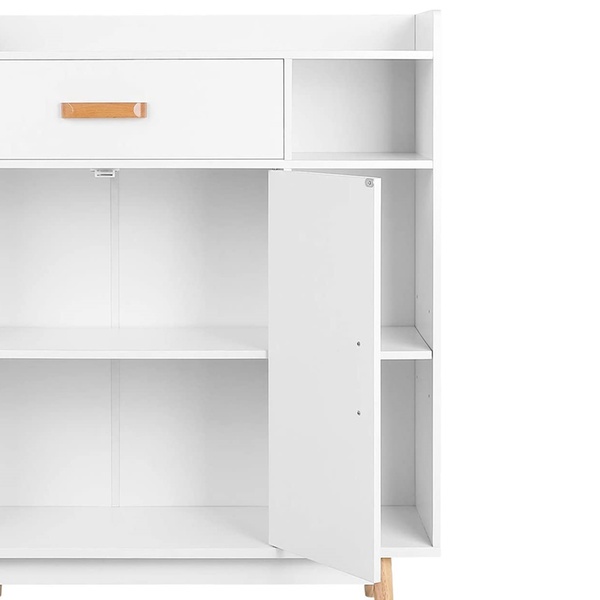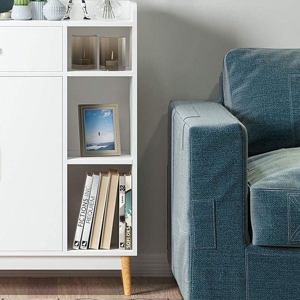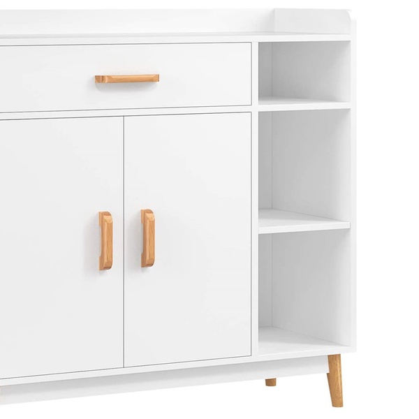 Featuring a modern nordic style, this wooden storage side cabinet was designed to store daily necessities like clothes and tableware