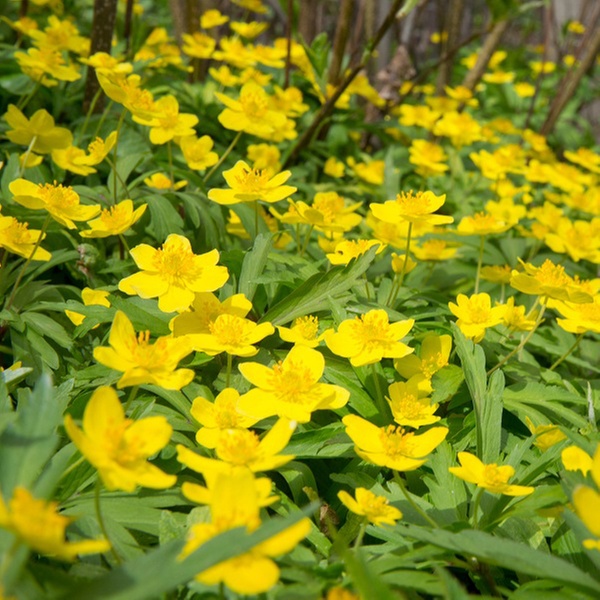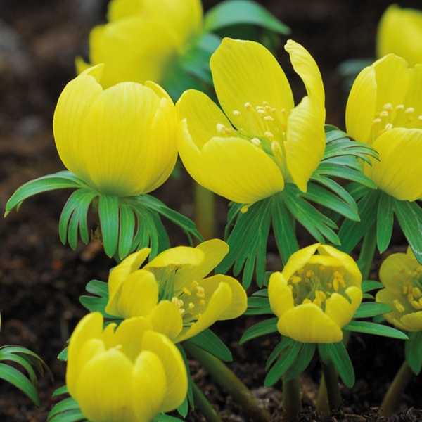 • Winter Aconites: Cheerful golden-yellow flowers that multiply quickly to form an early spring carpet, reaching 8cm high with a 5cm spread