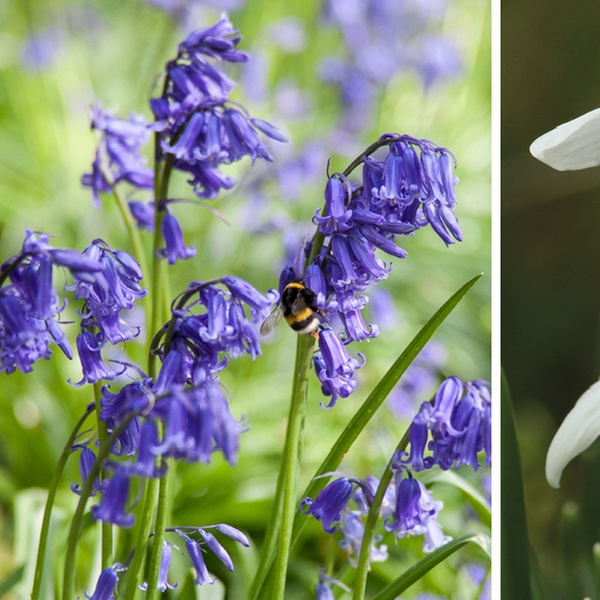 • English Bluebells: Graceful, nodding violet-blue, delicately scented flowers that create an ideal woodland look and attract pollinators, reaching 30cm high with an 8cm spread