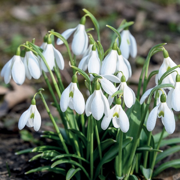 • Snowdrops: Elegant white blooms that signal the end of winter and brighten the garden early, growing to 15cm high with a 10cm spread