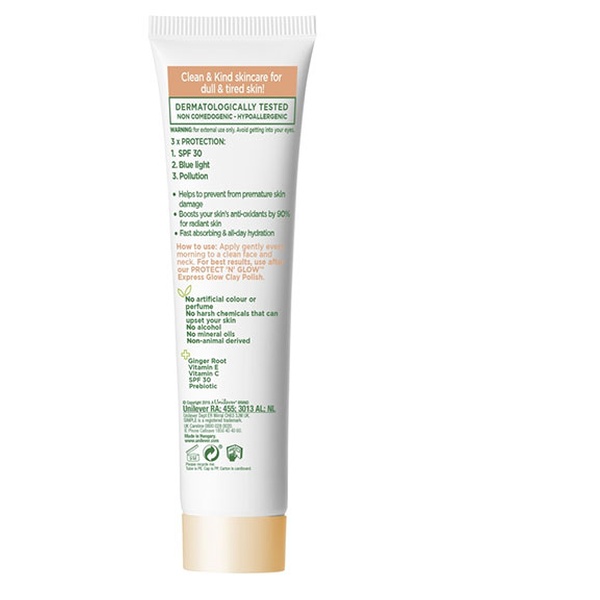 - Daily SPF 30 face moisturiser with triple protection against UVA and UVB rays, pollution and even blue light