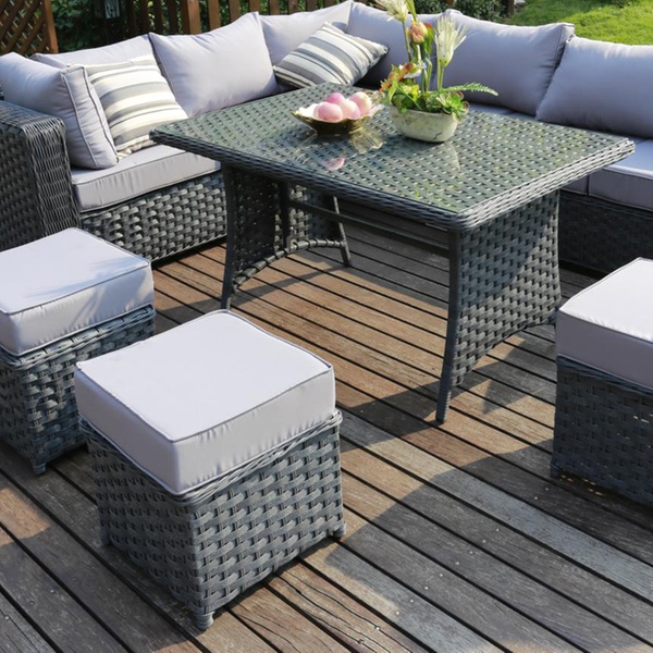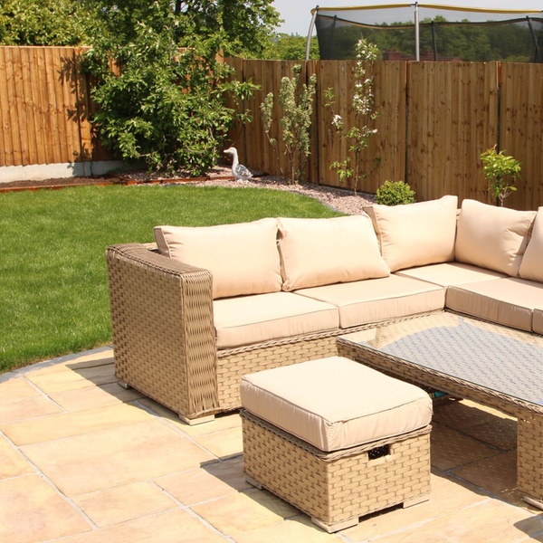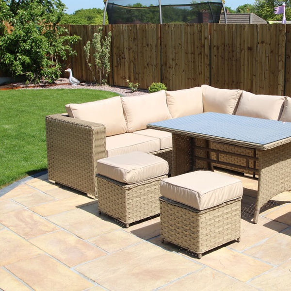 Add a touch of style and comfort to a garden or patio with this handmade furniture set which is available in three on-trend colours