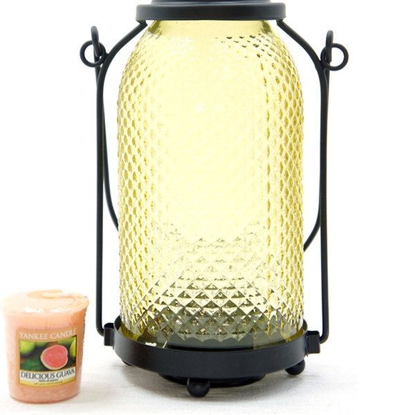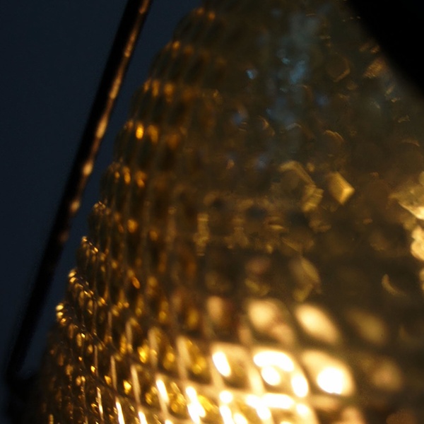 This lantern features a bubbled glass exterior with a contrasting metal frame; ideal for adding a vintage-inspired touch to most decors