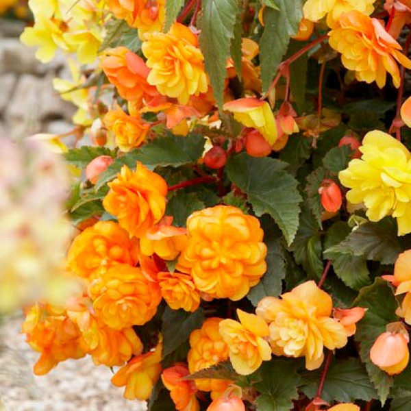 Vibrant and weather-resistant, this mix of Begonia tubers boasts a trailing habit that brightens up any garden from May to October